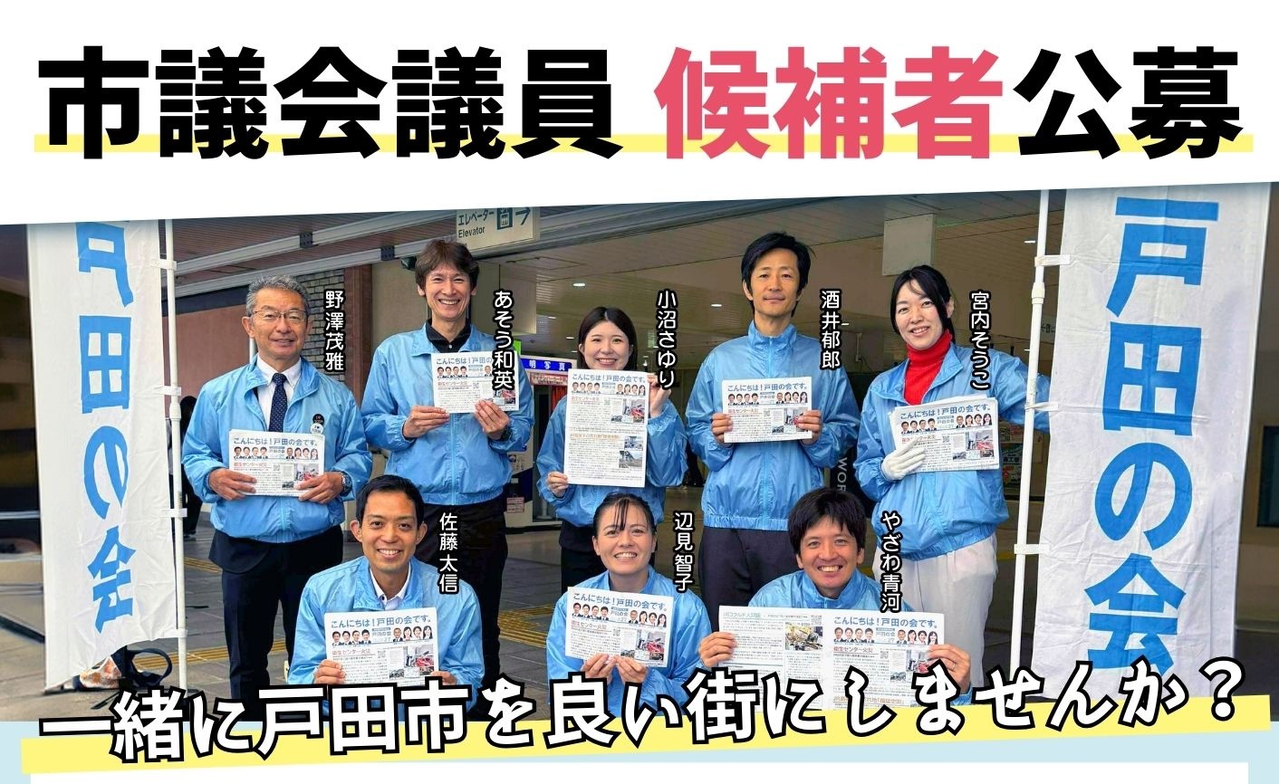 私たち戸田の会は、同じ志を持ち、真面目に市政を良くしていく仲間を募集しています。